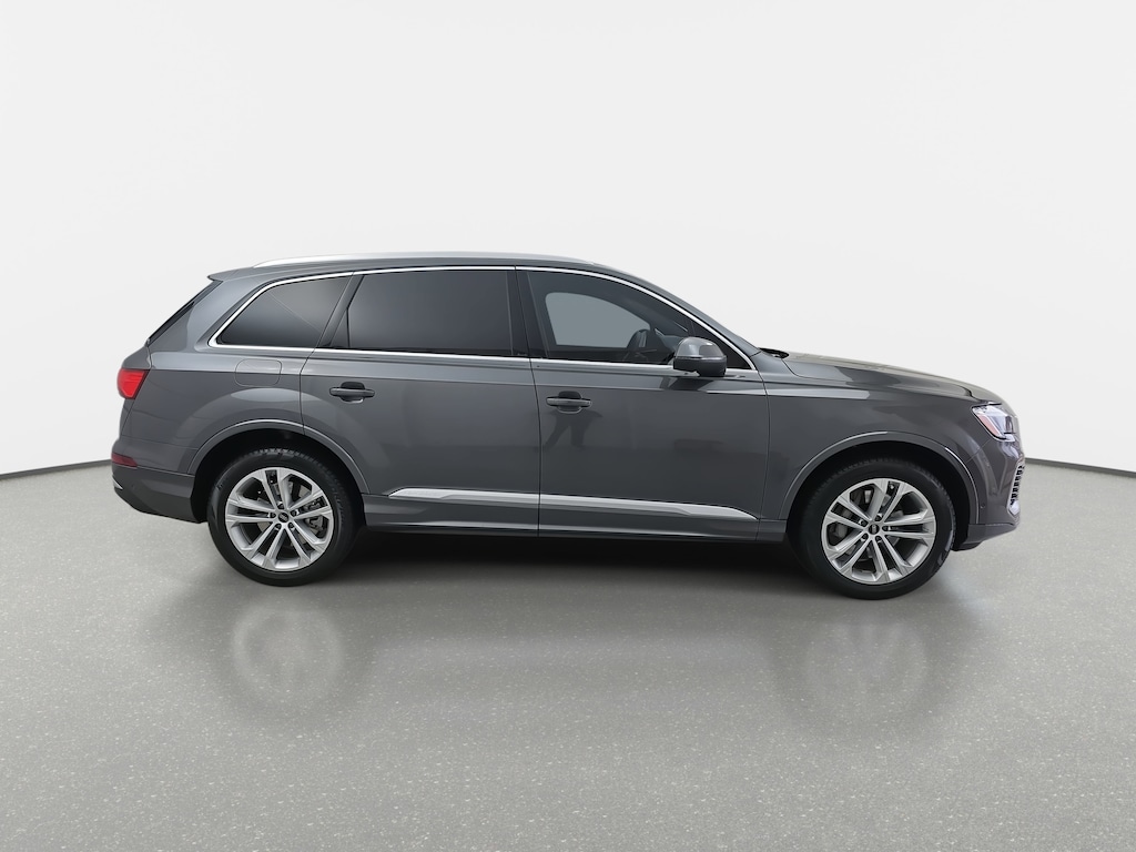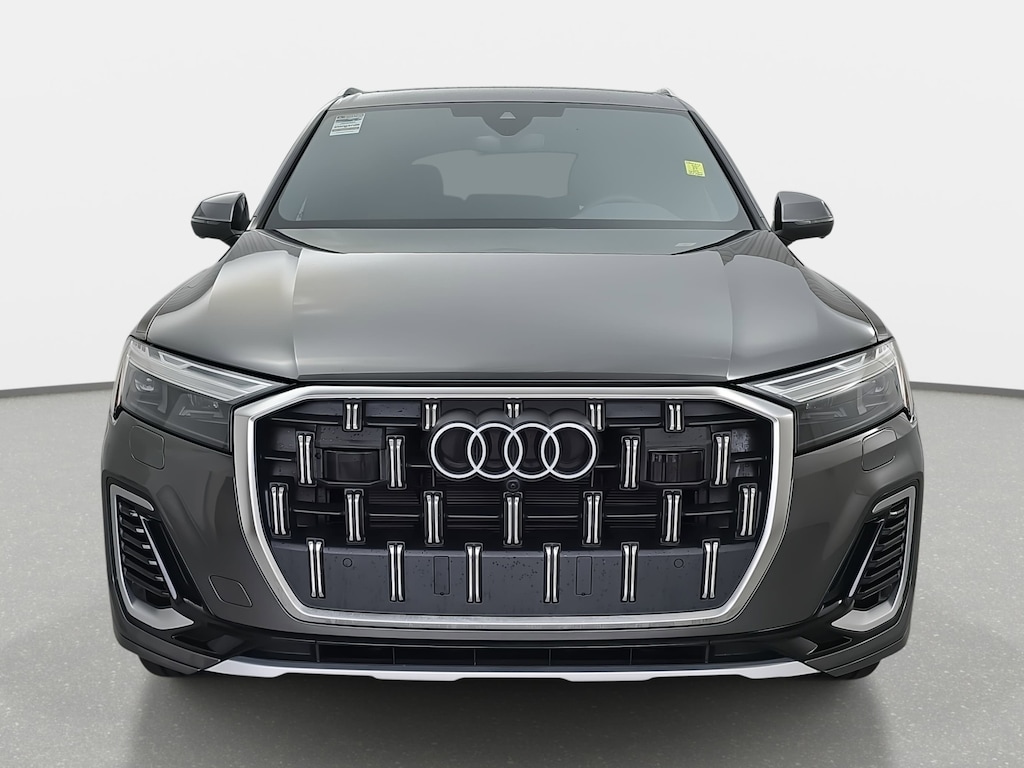 Samurai Gray Metallic 2025 Audi Q7 45 Premium quattro 2.0L 4-Cylinder TFSI 10 Speakers, 3rd row seats: bench, 4-Wheel Disc Brakes, ABS brakes, Air Conditioning, AM/FM radio: SiriusXM w/360L, Auto-dimming door mirrors, Auto-dimming Rear-View mirror, Automatic temperature control, Brake assist, Bumpers: body-color, Compass, Driver door bin, Driver vanity mirror, Dual front impact airbags, Dual front side impact airbags, Electronic Stability Control, Emergency communication system: Audi connect CARE, Four wheel independent suspension, Front anti-roll bar, Front Bucket Seats, Front Center Armrest, Front dual zone A/C, Front reading lights, Garage door transmitter: HomeLink, Genuine wood door panel insert, Heated door mirrors, Heated Front Bucket Seats, Heated front seats, Illuminated entry, Leather Seating Surfaces, Leather Shift Knob, Leather steering wheel, Low tire pressure warning, Memory seat, Navigation system: Audi MMI Navigation plus with Touch Response, Occupant sensing airbag, Outside temperature display, Overhead airbag, Overhead console, Passenger door bin, Passenger vanity mirror, Power door mirrors, Power driver seat, Power Liftgate, Power moonroof: Panoramic, Power passenger seat, Power steering, Power windows, Radio data system, Radio: Audi Sound System, Rear air conditioning, Rear anti-roll bar, Rear reading lights, Rear seat center armrest, Rear side impact airbag, Rear window defroster, Reclining 3rd row seat, Remote keyless entry, Speed-sensing steering, Split folding rear seat, Spoiler, Steering wheel memory, Steering wheel mounted audio controls, Tachometer, Telescoping steering wheel, Tilt steering wheel, Traction control, Trip computer, Turn signal indicator mirrors.