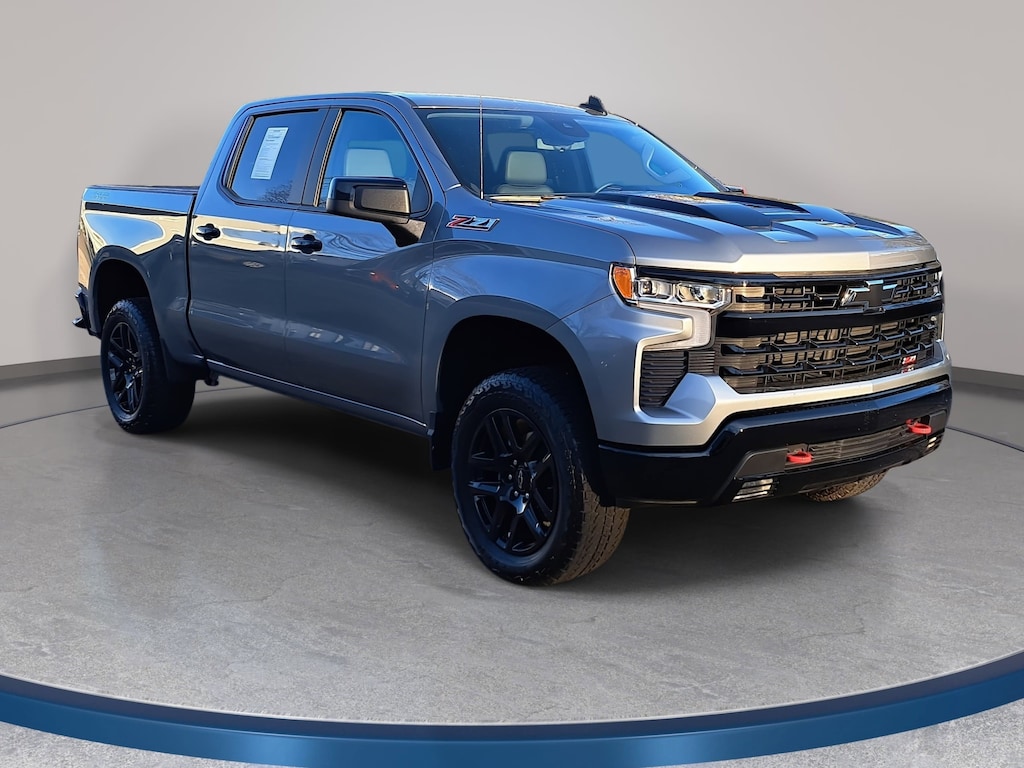 Clean CARFAX. Sterling Gray Metallic 2025 Chevrolet Silverado 1500 LT Trail Boss 4WD 10-Speed Automatic EcoTec3 5.3L V8 10-Speed Automatic, 4WD, Jet Black w/Perforated Leather-Appointed Front Seat Trim, 10-Way Power Driver Seat w/Lumbar, 120-Volt Interior Power Outlet, Convenience Package, Convenience Package II, Dual Rear USB Ports (Charge Only), Dual-Zone Automatic Climate Control, Electric Rear-Window Defogger, Heated Driver & Front Outboard Passenger Seats, Heated Steering Wheel, Hitch Guidance w/Hitch View, In-Vehicle Trailering System App, Keyless Open & Start, Leather Package, Leather-Appointed Front Seat Trim, LED Cargo Area Lighting, Manual Tilt/Telescoping Steering Column, Power Sliding Rear Window w/Rear Defogger, Premium Bose 7-Speaker Sound System, Remote Vehicle Starter System, Theft Deterrent System (Unauthorized Entry), Universal Home Remote, Up-Level Rear Seat w/Storage Package, Wrapped Steering Wheel.