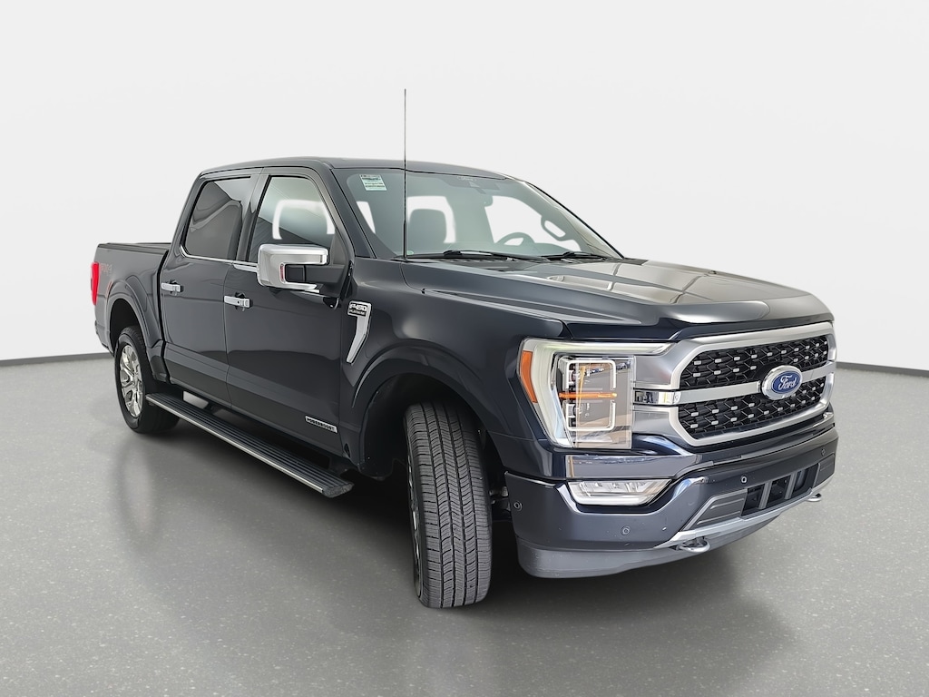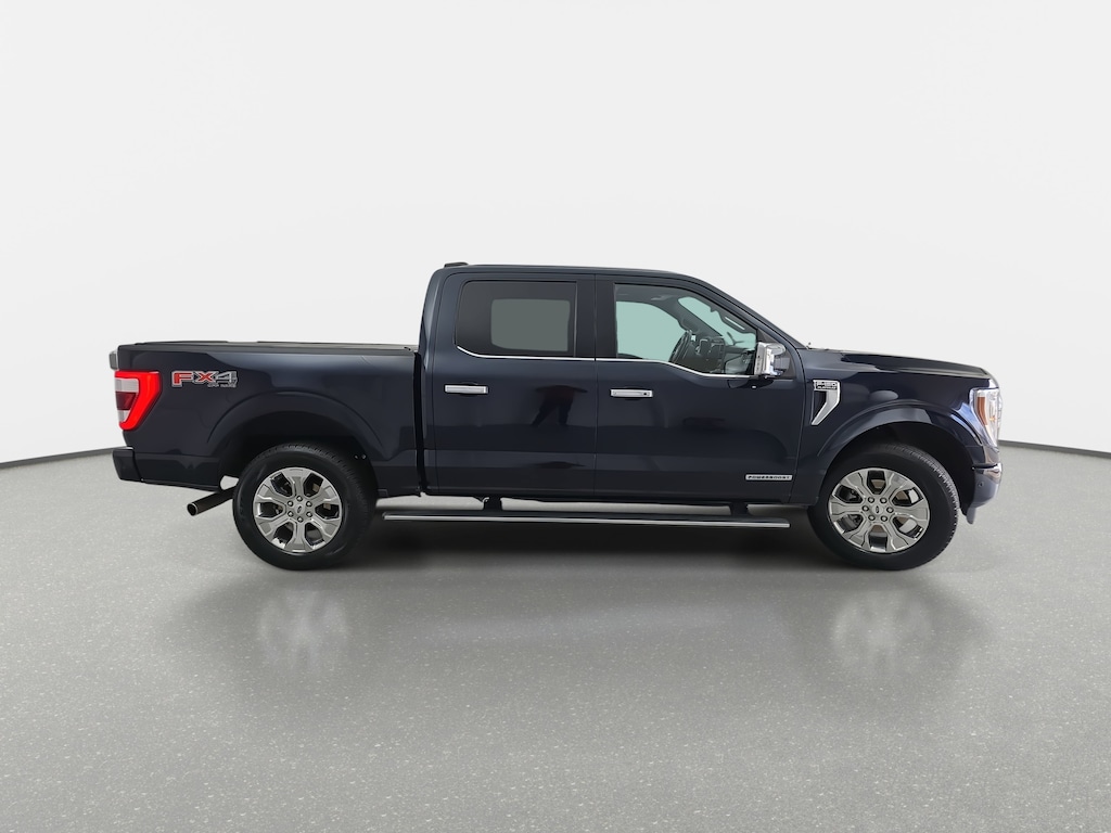 Antimatter Blue Metallic 2022 Ford F-150 Platinum 4WD 10-Speed Automatic 3.5L PowerBoost Full-Hybrid V6 3.5L PowerBoost Full-Hybrid V6, 4WD, 4x4 FX4 Off-Road Bodyside Decal, Bed Utility Package, Class IV Trailer Hitch Receiver, Electronic Locking w/3.31 Axle Ratio, Equipment Group 701A High, Ford Co-Pilot360 Active 2.0, FX4 Off-Road Package, Hill Descent Control, Integrated Trailer Brake Controller, Monotube Rear Shocks, Off-Road Tuned Front Shock Absorbers, Pro Trailer Backup Assist, Radio: B&O Unleashed Sound System by Bang & Olufsen, Rock Crawl Mode, Tow Technology Package, Trailer Tow Package, Tray Style Floor Liner.
