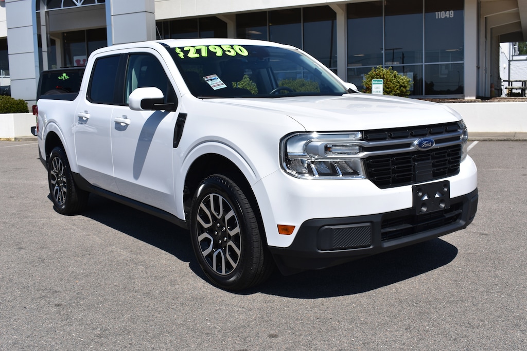 CARFAX One-Owner. Oxford White 2022 Ford Maverick Lariat AWD 8-Speed Automatic EcoBoost 2.0L I4 GTDi DOHC Turbocharged VCT 3.63 Axle Ratio, 4-Way Front Headrest, 4-Wheel Disc Brakes, 400W Inverter w/USB Console Rear, 6 Speakers, ABS brakes, Adaptive Cruise Control w/Stop & Go, Air Conditioning, AM/FM radio, Apple CarPlay/Android Auto, Auto High-beam Headlights, Automatic temperature control, Bed Tie Down Locking Rails, BLIS Blind Spot Info System w/Cross-Traffic Alert, Brake assist, Bumpers: body-color, Compass, Delay-off headlights, Dual front impact airbags, Dual front side impact airbags, Electronic Brake Boost, Electronic Stability Control, Equipment Group 500A Standard, Evasive Steering Assist, Exterior Parking Camera Rear, Ford Co-Pilot360, Four wheel independent suspension, Front & Rear Floor Liners w/Front Carpet Floor Mats, Front anti-roll bar, Fully automatic headlights, Heated Mirror, Heated Seats, Heated Steering Wheel, Illuminated entry, Knee airbag, Lane Centering, Lane-Keeping System, Lariat Luxury Package, LED Box Lighting, Low tire pressure warning, Manual-Folding Power Glass Sideview Mirrors, Occupant sensing airbag, Outside temperature display, Overhead airbag, Panic alarm, Power Moonroof, Power steering, Power windows, Radio data system, Radio: AM/FM Stereo w/6 Speakers, Radio: B&O Sound System by Bang & Olufsen, Rear anti-roll bar, Rear Parking Sensors, Rear step bumper, Remote keyless entry, Remote Start System, Speed-sensing steering, Spray-In Bedliner, Steering wheel mounted audio controls, Tachometer, Telescoping steering wheel, Tilt steering wheel, Tonneau Pickup Box Cover - Soft Folding, Traction control, Trailer Hitch Receiver w/4-Pin Connector, Trip computer, Wheel Lock Kit, Windshield Wiper De-Icer, Wireless Charging Pad.