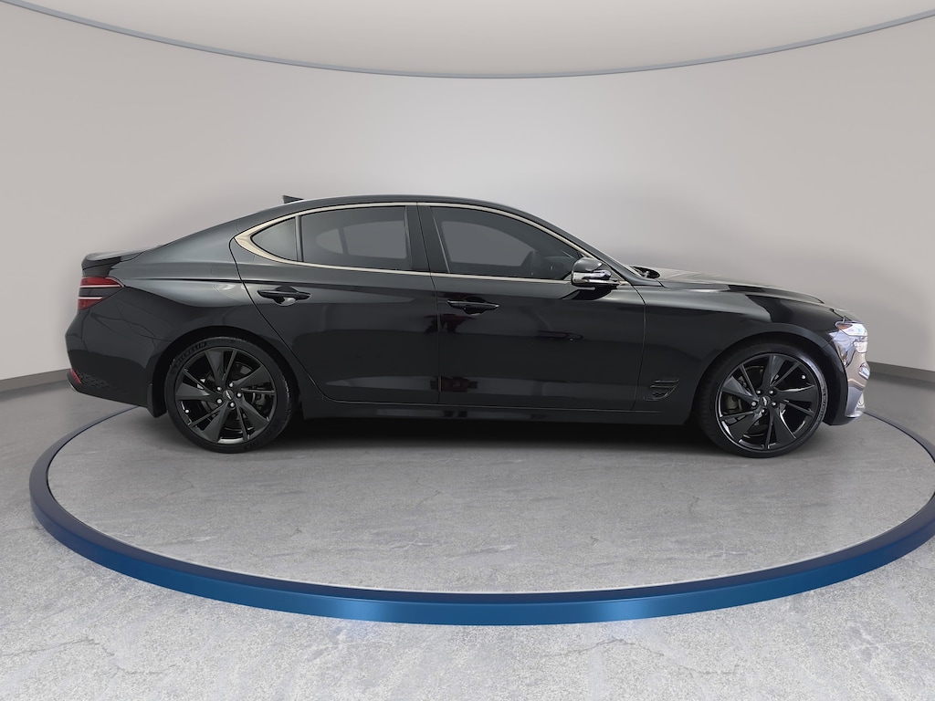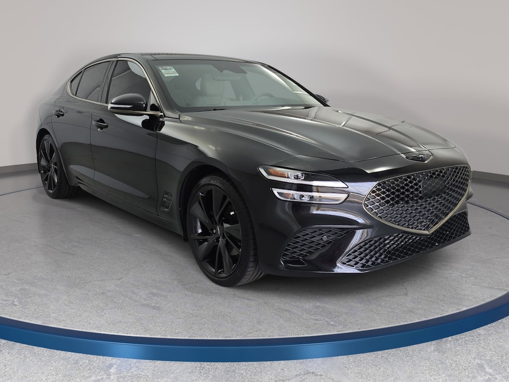 Black 2023 Genesis G70 2.0T I4 Android Auto & Apple CarPlay, Auto-dimming Rear-View mirror, Brake assist, Bumpers: body-color, Driver door bin, Driver vanity mirror, Electronic Stability Control, Exterior Parking Camera Rear, Front Bucket Seats, Front Center Armrest, Front reading lights, Garage door transmitter: HomeLink, Heated door mirrors, Heated front seats, Heated Multi-Adjustable Front Bucket Seats, Illuminated entry, Option Group 02, Outside temperature display, Overhead console, Passenger door bin, Passenger vanity mirror, Power door mirrors, Power passenger seat, Rear reading lights, Rear seat center armrest, Speed control, Speed-Sensitive Wipers, Split folding rear seat, Sport Prestige Package, Tachometer, Telescoping steering wheel, Trip computer, Turn signal indicator mirrors, Variably intermittent wipers, Wheels: 19" x 8.0J Fr & 19" x 8.5J Rr Alloy.