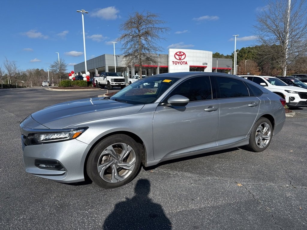 Lunar Silver Metallic 2018 Honda Accord EX FWD CVT 1.5T I4 DOHC 16V Turbocharged VTEC LOCAL TRADE IN, BACK UP CAMERA, HEATED SEATS, SUNROOF, BLIND SPOT MONITOR, SMART KEY W PUSH BUTTON START, APPLE CARPLAY & ANDROID AUTO, Black w/Cloth Seat Trim, 17 Machine-Finished Alloy Wheels, ABS brakes, Air Conditioning, Apple CarPlay/Android Auto, Auto High-beam Headlights, Blind Spot Information (BSI) System warning, Electronic Stability Control, Exterior Parking Camera Rear, Four wheel independent suspension, Front Bucket Seats, Front dual zone A/C, Fully automatic headlights, Heated Front Bucket Seats, Power driver seat, Power moonroof, Power steering, Power windows, Radio: 180-Watt AM/FM/HD/SiriusXM Audio System, Rear seat center armrest, Rear window defroster, Remote keyless entry, Steering wheel mounted audio controls, Telescoping steering wheel, Traction control.