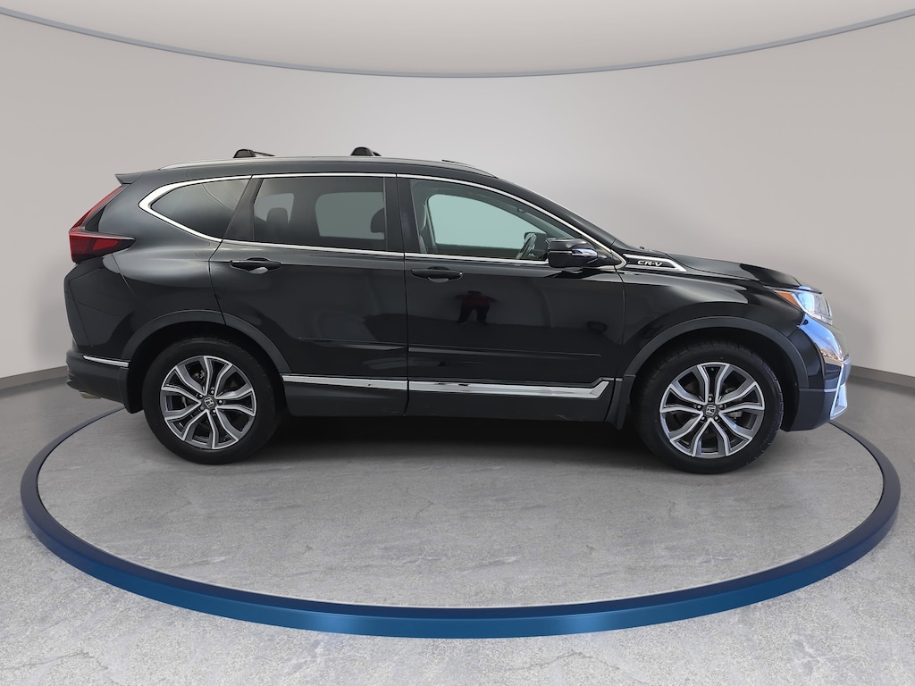 Clean CARFAX. CARFAX One-Owner. Crystal Black Pearl 2020 Honda CR-V Touring AWD CVT 1.5L I4 DOHC 16V 4-Wheel Disc Brakes, 9 Speakers, Adaptive Cruise Control: Adaptive Cruise Control (ACC) with Low-Speed Follow, Air Conditioning, Alloy wheels, AM/FM radio: SiriusXM, Apple CarPlay/Android Auto, Auto High-beam Headlights, Auto-dimming Rear-View mirror, Automatic temperature control, Blind Spot Information (BSI) System warning, Brake assist, Bumpers: body-color, Delay-off headlights, Electronic Stability Control, Exterior Parking Camera Rear, Forward collision: Collision Mitigation Braking System (CMBS) + FCW mitigation, Heated door mirrors, Heated Front Bucket Seats, Heated steering wheel, Memory seat, Navigation system: Honda Satellite-Linked Navigation System, Power door mirrors, Power Liftgate, Power moonroof, Remote keyless entry, Steering wheel mounted audio controls, Turn signal indicator mirrors, Wheels: 19" Machine-Finished Alloy w/Gray Inserts.