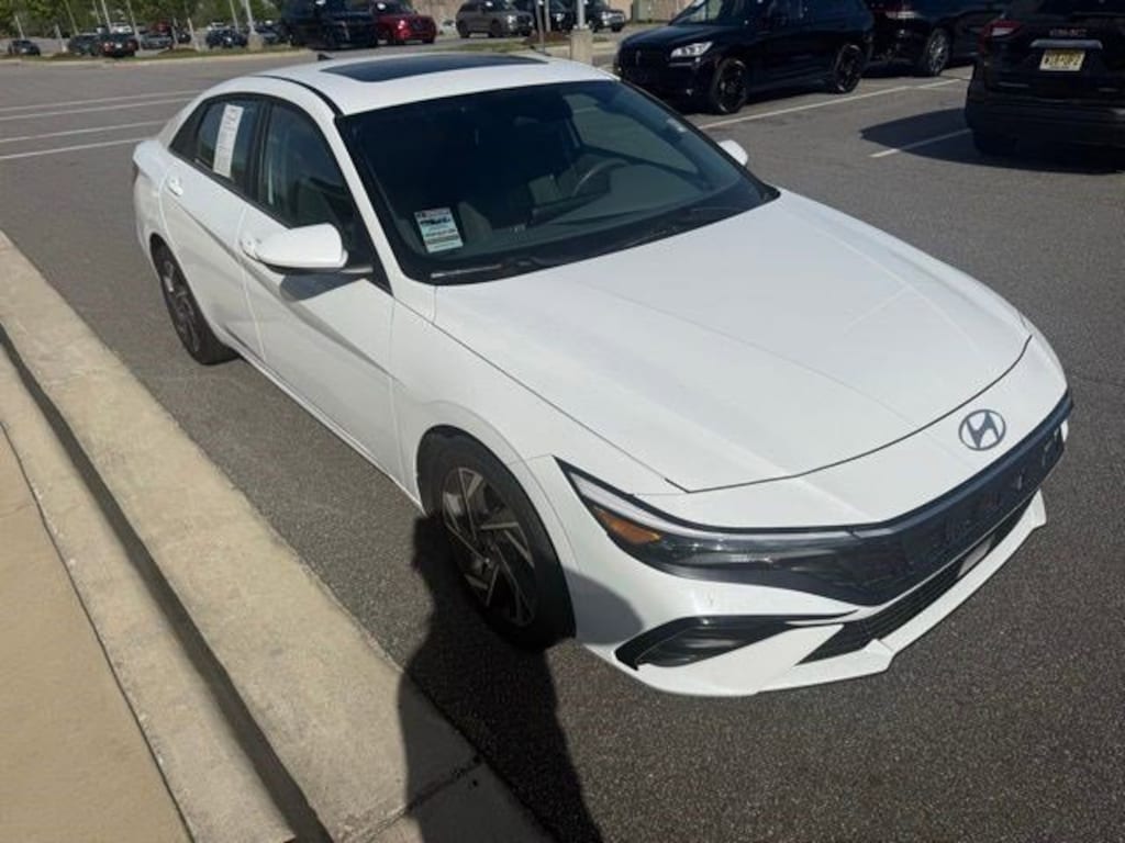 Serenity White 2025 Hyundai Elantra SEL Convenience FWD CVT I4 17" x 7.0J Alloy Wheels, 4-Wheel Disc Brakes, 6 Speakers, ABS brakes, Air Conditioning, Alloy wheels, AM/FM radio: SiriusXM, Apple CarPlay & Android Auto, Auto High-beam Headlights, Automatic temperature control, Brake assist, Bumpers: body-color, Delay-off headlights, Dual front impact airbags, Dual front side impact airbags, Electronic Stability Control, Emergency communication system: Bluelink+, Exterior Parking Camera Rear, Front anti-roll bar, Front dual zone A/C, Front wheel independent suspension, Fully automatic headlights, Heated door mirrors, Heated Front Bucket Seats, Heated front seats, Illuminated entry, Leather Shift Knob, Leather steering wheel, Low tire pressure warning, Navigation System, Occupant sensing airbag, Option Group 01, Outside temperature display, Overhead airbag, Panic alarm, Power door mirrors, Power moonroof, Power steering, Power windows, Premium Cloth Seat Trim, Radio: AM/FM/HD/SiriusXM Display Audio, Rear side impact airbag, Rear window defroster, Remote keyless entry, Security system, Speed control, Speed-sensing steering, Split folding rear seat, Steering wheel mounted audio controls, Tachometer, Telescoping steering wheel, Tilt steering wheel, Traction control, Trip computer, Variably intermittent wipers.