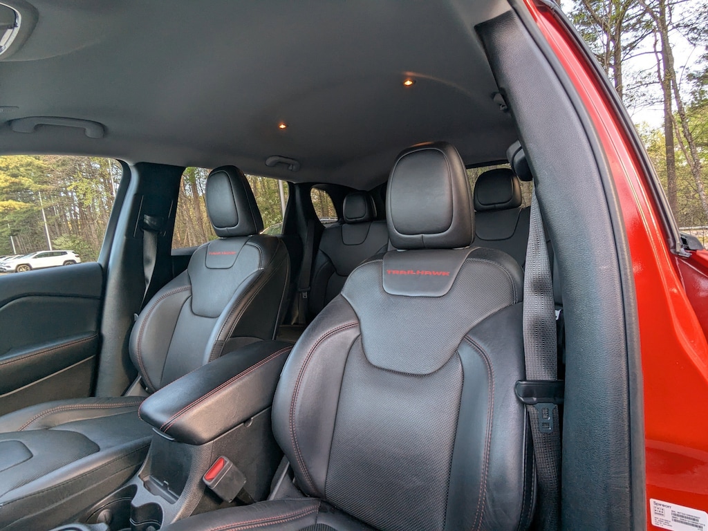 Spitfire Orange Clearcoat 2021 Jeep Cherokee Trailhawk 4WD 9-Speed Automatic 3.2L V6 Auto-Dimming Rear-View Mirror, Automatic temperature control, Comfort/Convenience Group, Exterior Mirrors w/Memory, Fully automatic headlights, Hands-Free Power Liftgate, Heated front seats, ParkView Rear Back-Up Camera, Power Driver/Passenger 4-Way Lumbar Adjust, Power Front Driver/Passenger Seats, Premium Leather Package, Premium Leather Trimmed Bucket Seats, Quick Order Package 27E Trailhawk, Radio: Uconnect 4 w/8.4" Display, Radio/Driver Seat/Exterior Mirrors Memory, Security Alarm, Universal Garage Door Opener, Ventilated Front Seats, Wheels: 17" x 7.5" Painted Diamond Cut Aluminum.