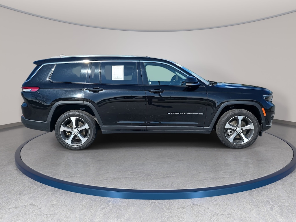 Diamond Black Crystal Pearlcoat 2023 Jeep Grand Cherokee L Limited 4WD 8-Speed Automatic 3.6L V6 24V VVT 3.45 Rear Axle Ratio, 3rd row seats: split-bench, 4-Wheel Disc Brakes, 506 Watt Amplifier, 6 Speakers, 9 Amplified Speakers w/Subwoofer, ABS brakes, Active Noise Control System, Air Conditioning, Alloy wheels, AM/FM radio: SiriusXM with 360L, Anti-whiplash front head restraints, Audio memory, Auto High-beam Headlights, Automatic temperature control, Brake assist, Bumpers: body-color, Capri Leatherette Seats, Compass, Delay-off headlights, Dual front impact airbags, Dual front side impact airbags, Electronic Stability Control, Emergency communication system, Four wheel independent suspension, Front anti-roll bar, Front Bucket Seats, Front Center Armrest w/Storage, Front dual zone A/C, Front fog lights, Fully automatic headlights, Garage door transmitter, Heated door mirrors, Heated front seats, Heated rear seats, Heated steering wheel, Illuminated entry, Knee airbag, Low tire pressure warning, Manual Fold Seatbacks, Memory seat, Molded In Color Black/Gloss Black Roof Rails, Navigation System, Normal Duty Suspension, Occupant sensing airbag, Outside temperature display, Overhead airbag, Panic alarm, ParkView Rear Back-Up Camera, Passenger door bin, Power door mirrors, Power driver seat, Power Liftgate, Power passenger seat, Power steering, Power windows, Quick Order Package 23E, Radio data system, Radio: Uconnect 5 Nav w/10.1" Display, Rear air conditioning, Rear anti-roll bar, Rear window defroster, Rear window wiper, Reclining 3rd row seat, Remote keyless entry, Security system, Speed control, Speed-Sensitive Wipers, Split folding rear seat, Spoiler, Steering wheel mounted audio controls, Tachometer, Telescoping steering wheel, Tilt steering wheel, Traction control, Trip computer, Turn signal indicator mirrors, Variably intermittent wipers, Voltmeter, Wheels: 20" x 8.5" Machined/Painted Aluminum.