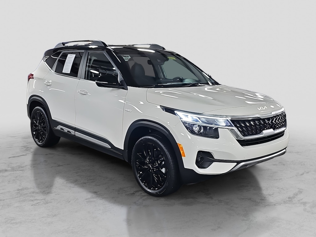 CARFAX One-Owner. Clear White/Black Roof 2023 Kia Seltos Nightfall 7-Speed Automatic I4 Glossy Black Door Garnish, Glossy Black Door Garnish Package, Navigation System, Wheels: 18" Alloy w/Matte Black Finish.