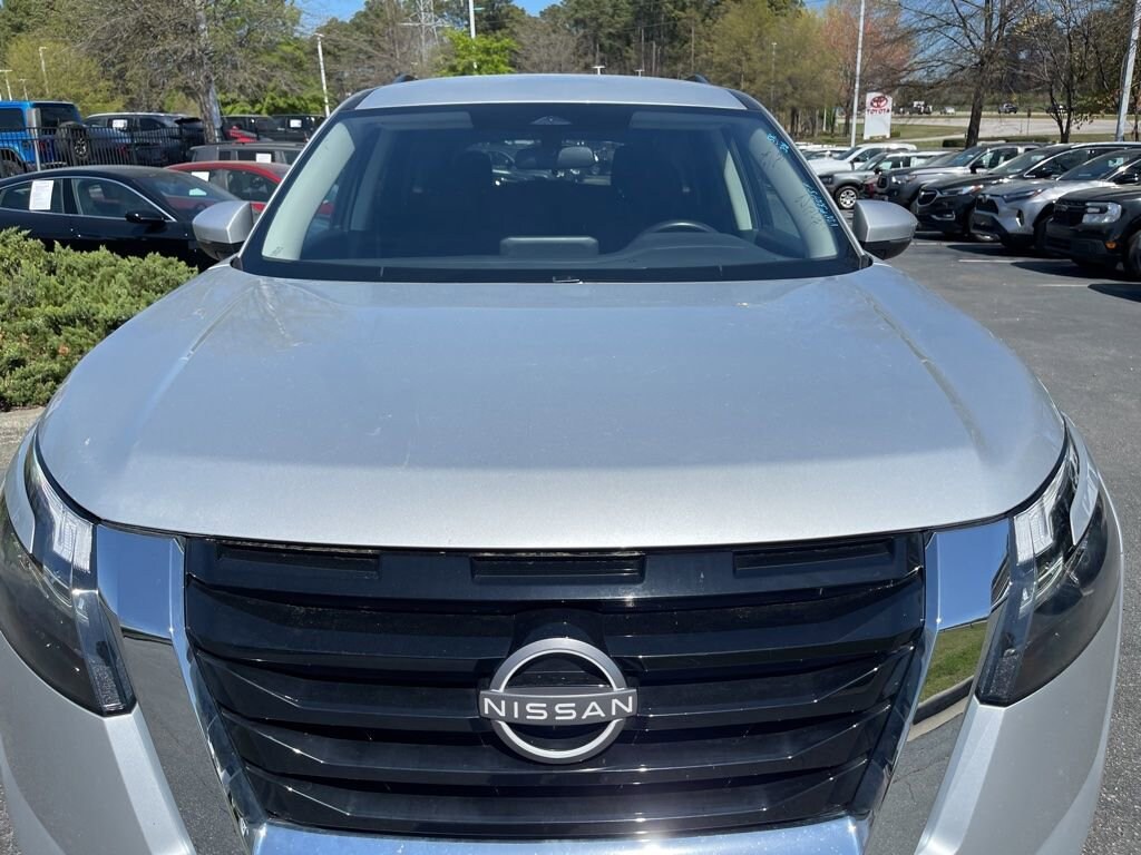 Clean CARFAX. CARFAX One-Owner. Brilliant Silver Metallic 2024 Nissan Pathfinder SV FWD 9-Speed Automatic 3.5L V6 DOHC Clean Carfax 1 Owner/No Accident Vehicle, LOCAL TRADE IN, BACK OF CAMERA, HEATED SEATS, NAVIGATION, THIRD ROW SEAT, SMART KEY W PUSH BUTTON START, LANE DEPARTURE ALERT W STEERING ASSIST, BLIND SPOT MONITOR, 1-OWNER, NO ACCIDENTS, MUST SEE!, 3rd row seats: bench, ABS brakes, Air Conditioning, Auto High-beam Headlights, Automatic temperature control, Cloth Seating Surfaces, Electronic Stability Control, Four wheel independent suspension, Front dual zone A/C, Fully automatic headlights, Heated Front Bucket Seats, Low tire pressure warning, Outside temperature display, Passenger vanity mirror, Power driver seat, Power steering, Power windows, Radio: AM/FM Audio System w/NissanConnect, Rear air conditioning, Rear Parking Sensors, Rear seat center armrest, Rear window defroster, Reclining 3rd row seat, Remote keyless entry, Steering wheel mounted audio controls, Telescoping steering wheel, Traction control, Turn signal indicator mirrors, Wheels: 18 x 8J Painted Alloy.