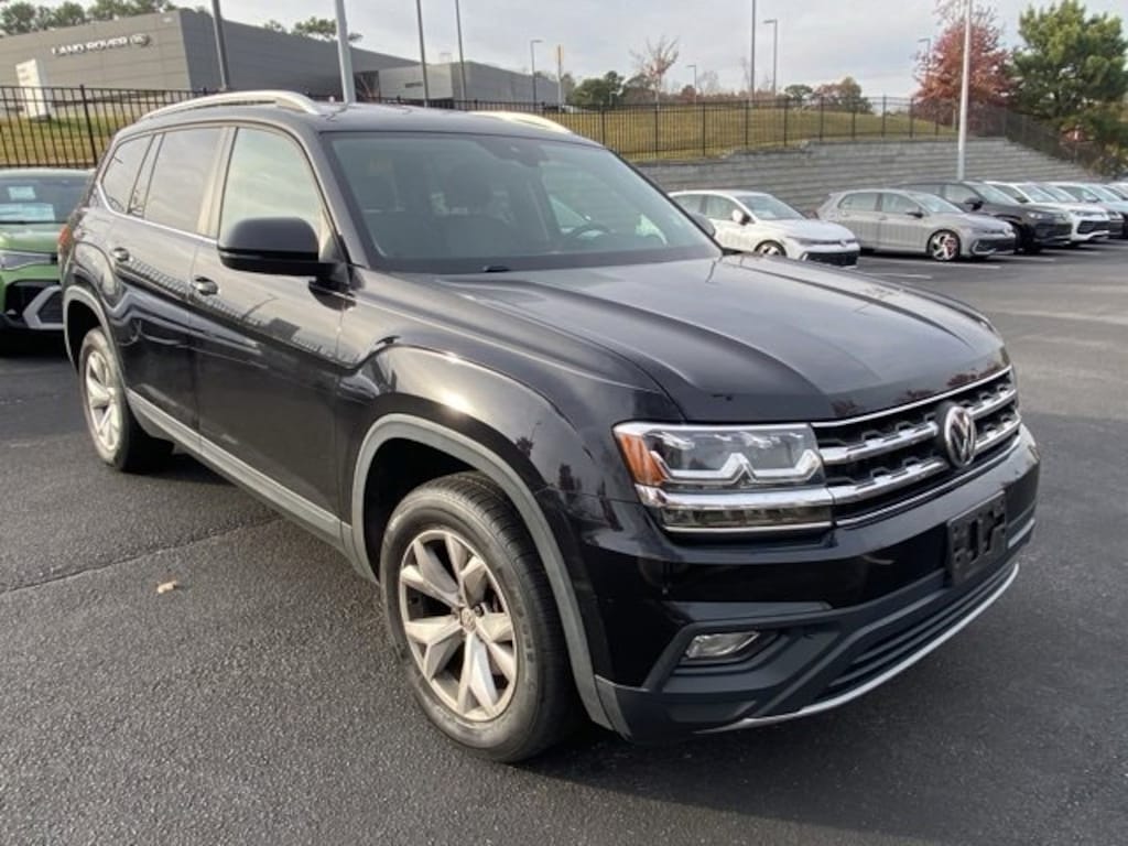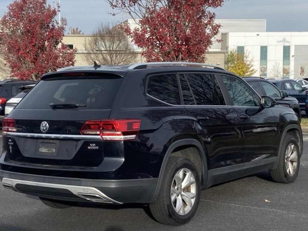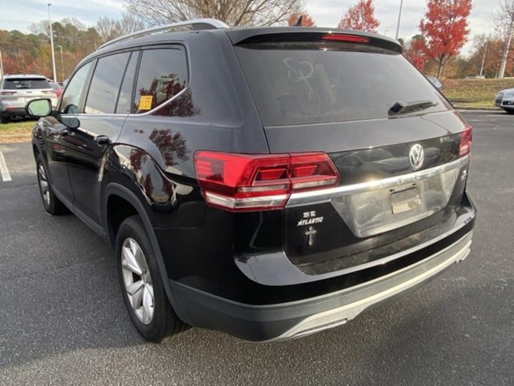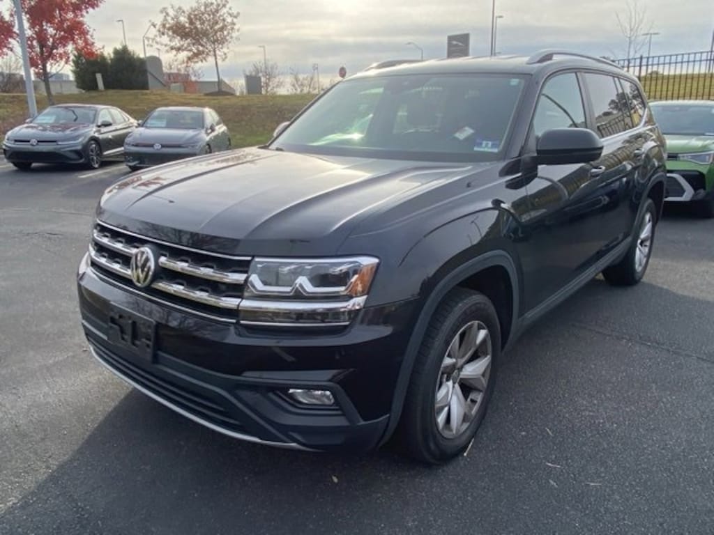 Deep Black Pearl 2019 Volkswagen Atlas 3.6L V6 SE w/Technology AWD 8-Speed Automatic with Tiptronic 3.6L VR6 Non-Smoker, 18" 5-Spoke Wheels, 3.60 Axle Ratio, 3rd row seats: split-bench, AM/FM radio: SiriusXM, Automatic temperature control, Brake assist, Electronic Stability Control, Exterior Parking Camera Rear, Forward collision: FCW w/Autonomous Emergency Braking mitigation, Front Bucket Seats, Front dual zone A/C, Heated front seats, Power driver seat, Power Liftgate, Radio: Composition Media 8.0" Touchscreen, Rain sensing wipers, Rear air conditioning, Rear window wiper, Remote keyless entry, Split folding rear seat, Steering wheel mounted audio controls, V-Tex Leatherette Seating Surfaces.