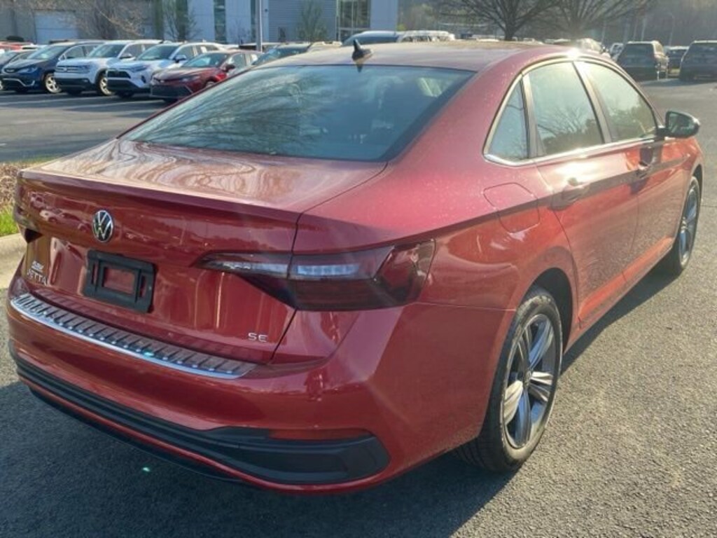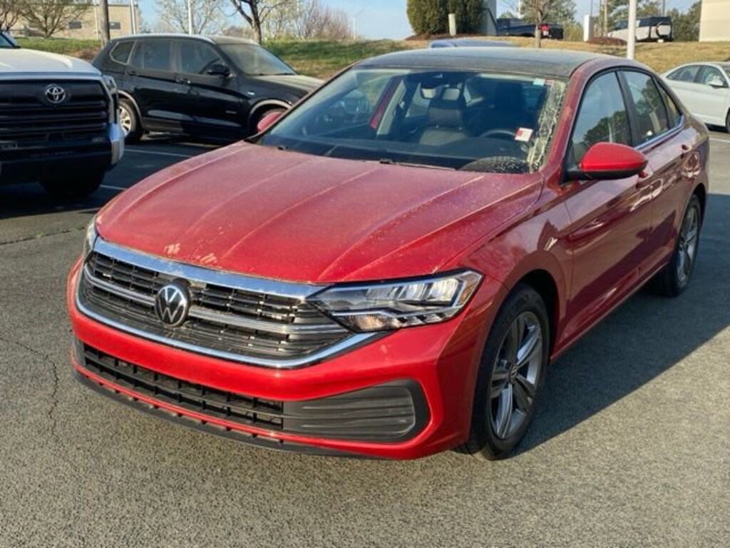 Kings Red Metallic 2023 Volkswagen Jetta 1.5T SE FWD 8-Speed Automatic with Tiptronic 1.5L I-4 DI DOHC Turbocharged Certified Warranty - 2 Years / 24,000 Miles, Local Trade, Non-Smoker, Titan Black w/V-Tex Leatherette Seat Trim, AM/FM radio, Automatic temperature control, Brake assist, Dual Front Reading Lights, Electronic Stability Control, Exterior Parking Camera Rear, Front dual zone A/C, Fully automatic headlights, Heated front seats, Illuminated Vanity Mirrors, Overhead Storage Compartment, Panoramic Sunroof Package, Power driver seat, Power Tilting & Sliding Panoramic Sunroof, Radio: MIB3 Composition Color w/6.5" Touchscreen, Rain sensing wipers, Remote keyless entry, Speed-sensing steering, Split folding rear seat, Steering wheel mounted audio controls, Traction control, V-Tex Leatherette Seat Trim.