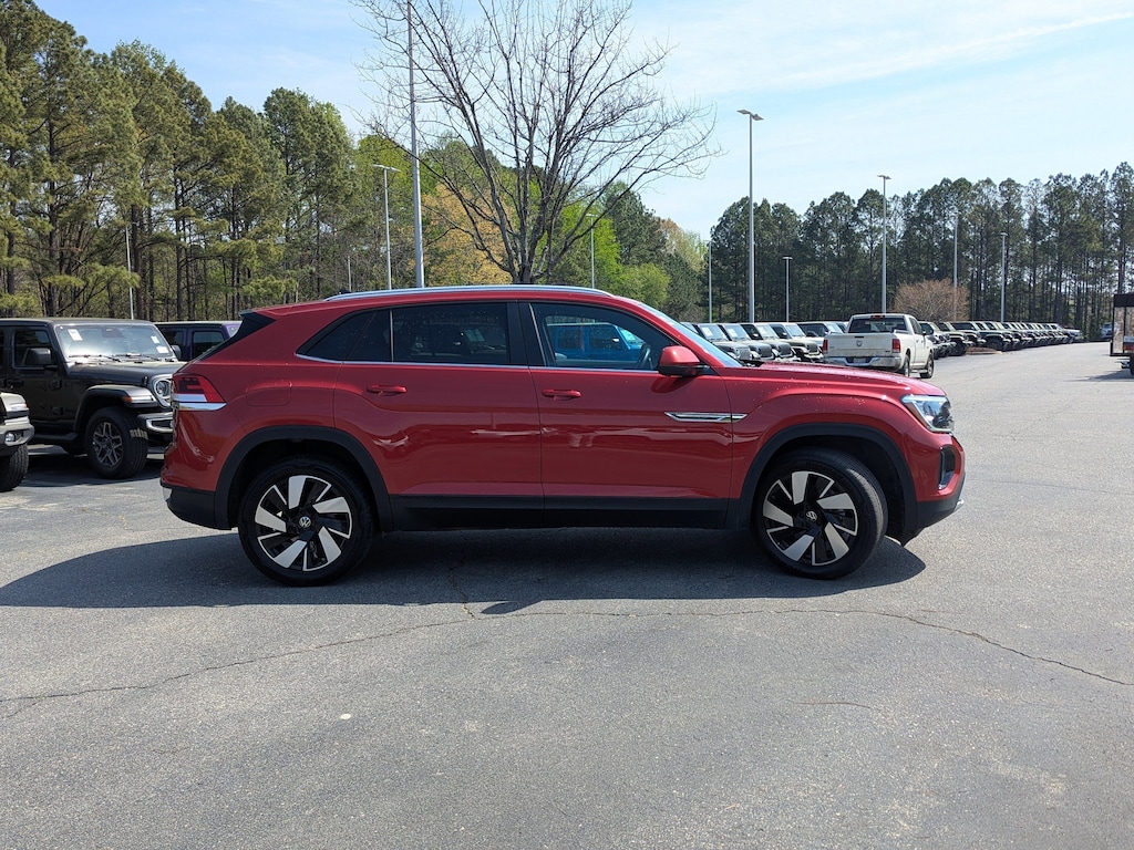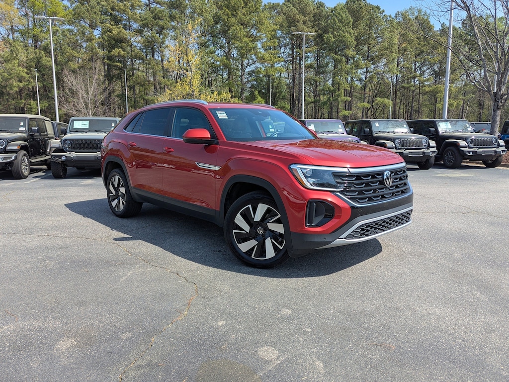 Red Metallic 2024 Volkswagen Atlas Cross Sport 2.0T SE w/Technology FWD 8-Speed Automatic with Tiptronic 2.0L TSI Automatic temperature control, Exterior Parking Camera Rear, Fully automatic headlights, Heated & Actively Ventilated Front Seats, Heated steering wheel, Outside temperature display, Panoramic Sunroof Package, Perforated V-Tex Leatherette Seating Surfaces, Power driver seat, Power Liftgate, Power Tilting & Sliding Panoramic Sunroof, Radio: MIB3 Composition Media AM/FM/HD, Remote keyless entry, Security system, Wheels: 20" 5-Spoke 2-Tone Machined Alloy.